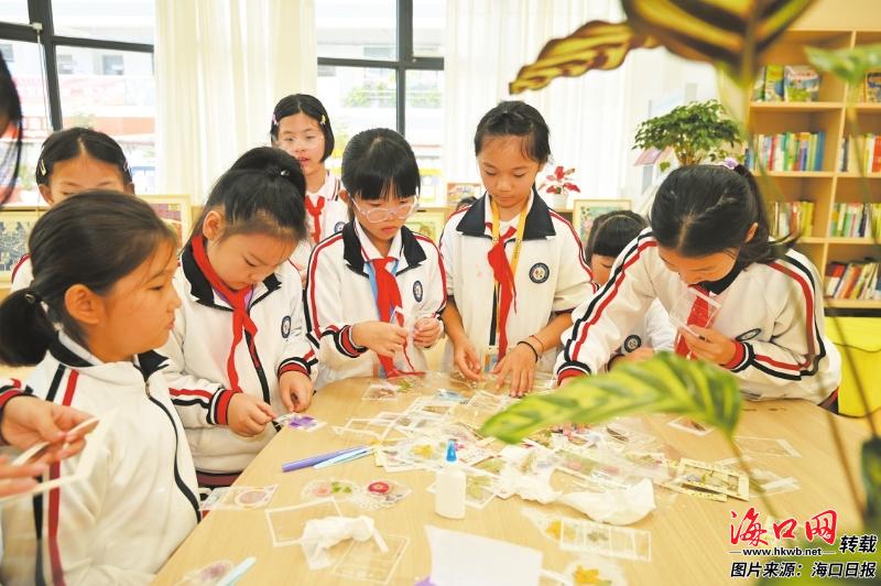 2025年海口市市级民生实事“书香校园”项目成果汇报会在西秀实验小学举办,活动中,学生们认真制作廉洁主题书签。 记者 石中华 摄
