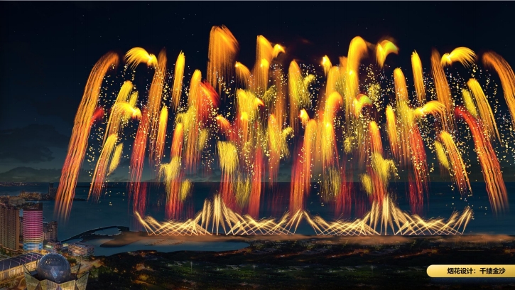 晚会将由万绿园的无人机表演与美源游艇码头的烟花秀在天幕联动呈现,呈现21个融合椰城文化与自贸港意象的特色焰火画面,包括七彩祥云、多彩未来、幸福树、千里金沙、春蝶纷飞、盛世中华等,并融合椰城文化设计了椰风海韵、浪花朵朵等全新画面,为海口市民游客带来亲切温馨的体验,同时通过蓝海碧波、椰城幻彩、街巷繁华等画面描绘自贸港蓬勃起航的盛景。晚会还创新采用品类多样的组合燃放和独特的立体景深设计,提升色彩搭配、空间层次感与视觉动感。