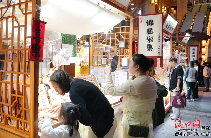 2月25日晚上,在美兰区东坡老码头内,各种非遗手工作品吸引市民游客驻足。记者 杨忠凯 摄