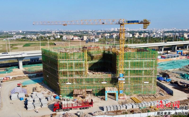 俯瞰正在加快建设的海口江东新区地下综合管廊控制中心一期项目。记者 杨忠凯 摄