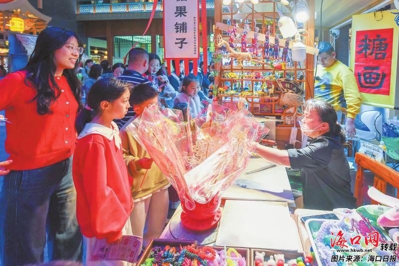 这个春节假期,骑楼老街宛如一个巨大的流动舞台,精彩节目接连不断。2月21日,演艺人员化身象征“福、禄、寿、喜、财”的“神仙”沿街巡游,与市民游客互动送福。当天还上演了海南公仔戏、吹树叶、黎族鼻箫、海南民歌、琼剧等节目,让市民游客于传统韵味中感受浓浓年味。