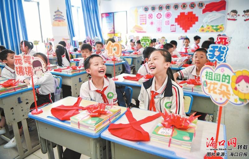 海口市五源河学校粤海校区将教室布置得十分喜庆,迎接孩子们返校报到。记者 石中华 摄