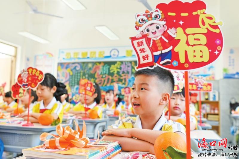 当天上午8时,海口市五源河学校校园内传出阵阵民乐声。该校民乐团带来了琵琶、古筝、扬琴等传统乐器演奏,40余名学生现场演绎《彩云追月》等曲目,为陆续入校的同学们送上开学祝福。记者走进教学楼看到,多间教室门口挂上了小零食以及创意春联,桌面上崭新的课本用蝴蝶结打包成“新学期礼物”。“我们希望通过这种方式,让返校学生感到亲切,更快地‘收心’融入校园生活。”该校德育处副主任肖慧介绍。
