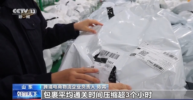 跨境电商物流企业负责人 陈霄:新模式下,企业足不出户就能在仓内完成通关手续,跨境电商平台约30%的商品可提前一天发运,包裹平均通关时间压缩超3个小时,国内物流成本下降超20%。