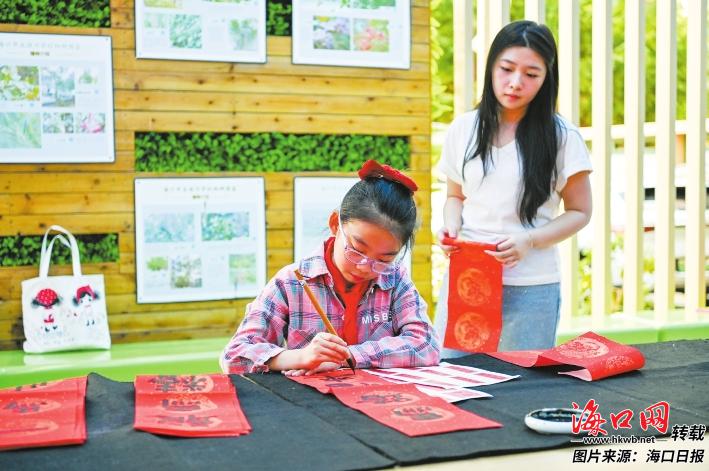 传统文化带着年味,陪伴同学们走进新学期。当天上午7时40分,海口市五源河学校校园内墨香四溢,师生们挥毫泼墨,在红纸上书写“马到成功”“龙马精神”等成语,为大家送上新学期祝福。“在写‘马’的过程中,我也受到了鼓舞,希望新学期可以策马扬鞭、勇往直前。”该校四(5)班学生杨柳向记者展示自己的作品,开心地说。