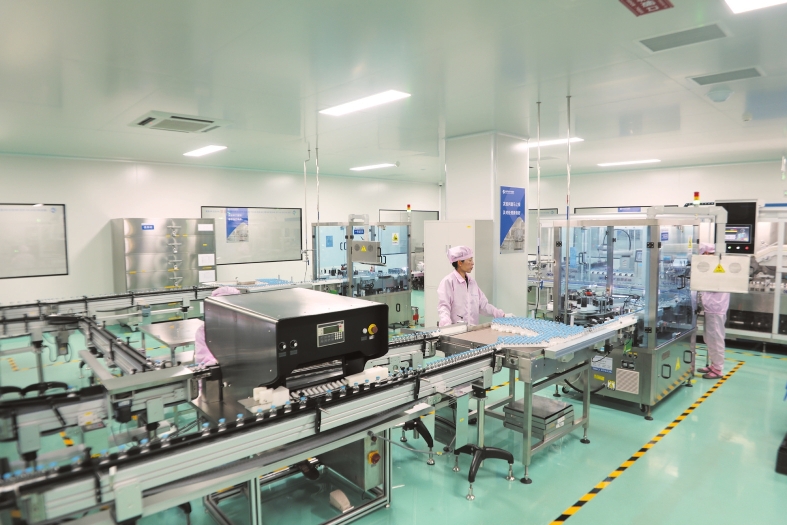 近日,在海南通用三洋药业有限公司生产车间,生产线繁忙运转,工人们正忙生产、赶订单。记者陈丽园 通讯员蔡翔任 摄