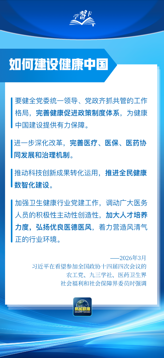 总书记在重要讲话中强调,坚定不移走中国特色卫生与健康发展道路,推动“十五五”时期健康中国建设取得决定性进展。