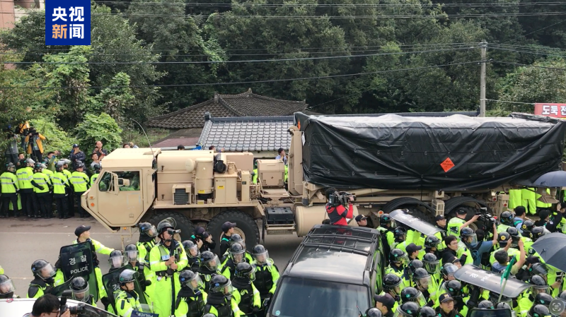 △2017年9月,“萨德”反导系统运抵韩国部署时,当地民众激烈反对,同警方发生冲突。