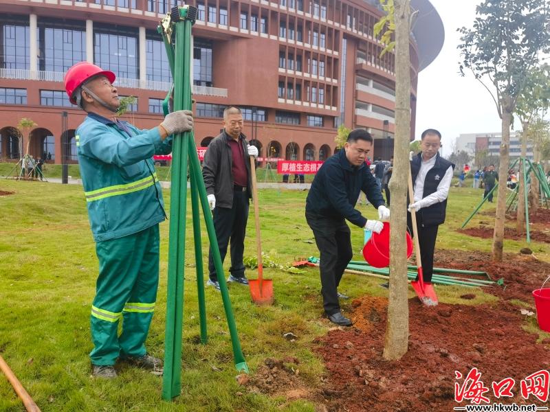 海口网3月12日消息(记者史子杨 特约记者萧海山 摄影报道)3月12日,正值我国第48个植树节,海口市龙华区2026年春季群众性义务植树活动在海南大学观澜湖校区举行。区四套班子领导、海南大学校领导及师生代表、区直机关干部、驻区部队官兵、社会各界代表等约300人参与活动。
