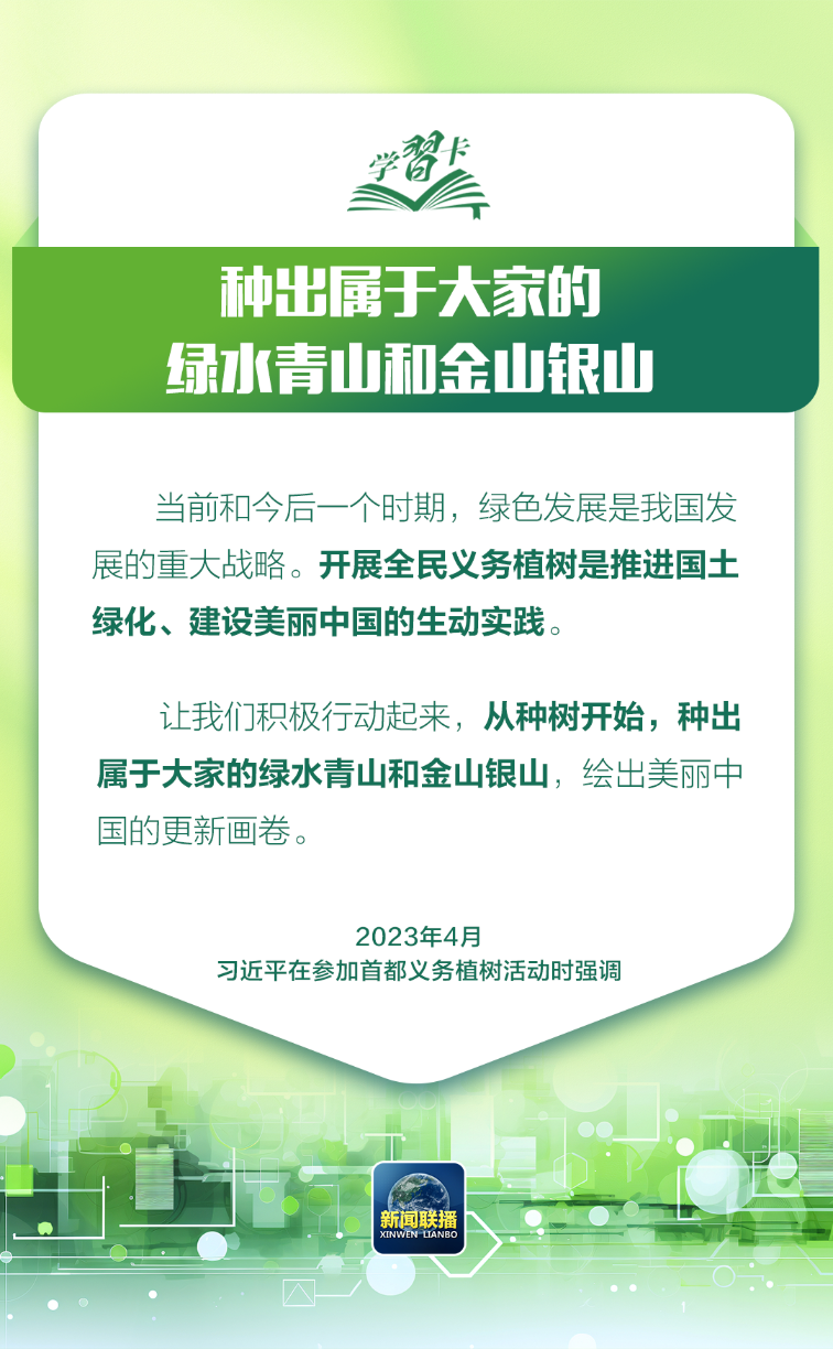 今天是植树节。加快形成绿色生产方式和生活方式、建设美丽中国,一起学习领悟总书记的重要论述。