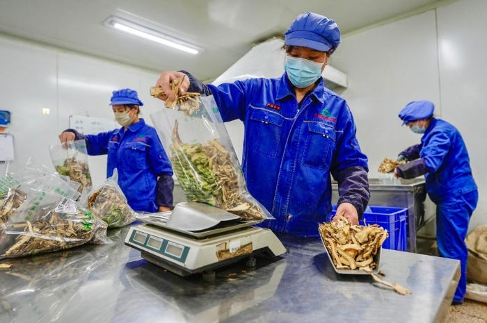 2026年1月26日,工作人员在宁夏固原市隆德县一家药材加工企业分包当归。新华社记者 杨植森 摄