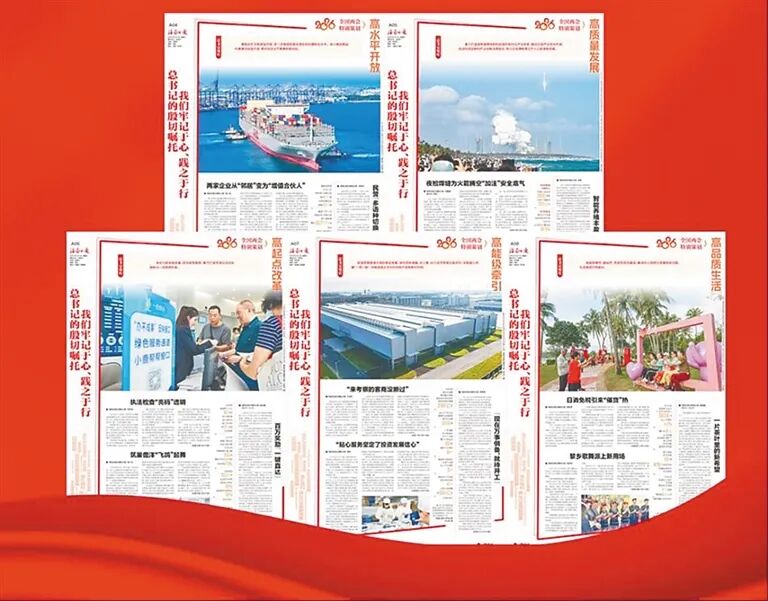 建设海南自由贸易港是习近平总书记亲自谋划、亲自部署、亲自推动的重大国家战略。今年是海南自贸港全岛封关运作后首个完整年度,在全国两会召开之际,海南日报重磅推出头版通讯《且趁春风赴新程——写在2026年全国两会召开之际》和5个整版特刊《总书记的殷切嘱托 我们牢记于心、践之于行》,组织记者深入自贸港建设一线采写15个故事,生动呈现全省上下牢记嘱托、担当作为,努力把海南自由贸易港打造成为引领我国新时代对外开放的重要门户的鲜活实践。