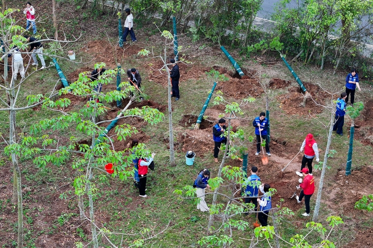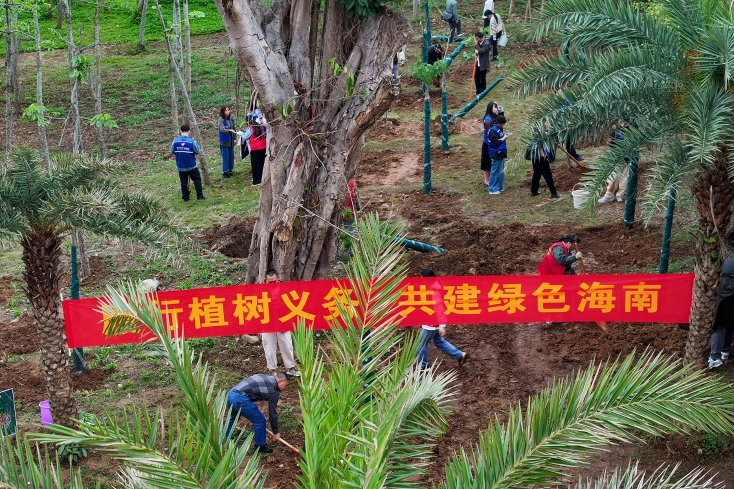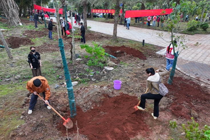 海口网3月14日消息(记者谢昀惠 特约记者许晶亮 王伦)3月12日,海口市琼山区四套班子领导来到滨江路河口溪小游园植树点,与党员干部、社会各界人士及志愿者,共同参加2026年义务植树活动,以实际行动为琼山增绿添彩、厚植生态底色。