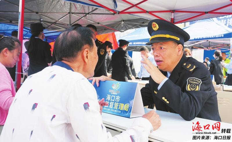 3月15日,海南省市场监管局联合海口市市场监管局在海南万佳家居装饰广场开展宣传活动。工作人员耐心倾听消费者的诉求。