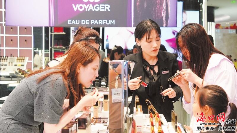 在cdf海口国际免税城内,游客在挑选心仪的商品。
