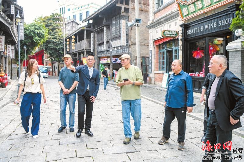 3月19日,2026“跟着电影游海口”系列活动之“名家看海口”——海口市影视勘景采风活动举行。图为嘉宾走进观澜湖华谊冯小刚电影公社采风。记者 苏弼坤 摄