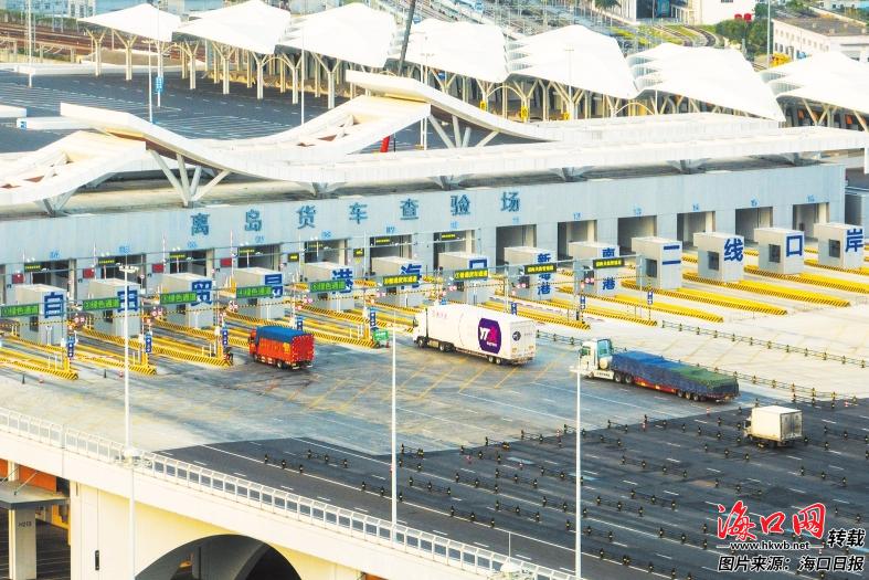 3月21日,海口新海港和南港“二线口岸”(货运)集中查验场,货车顺畅通行。记者 石中华 摄