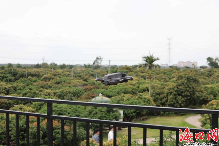 专业穿梭机正在花海间飞行,实景拍摄荔枝花海。(秀英区供图)