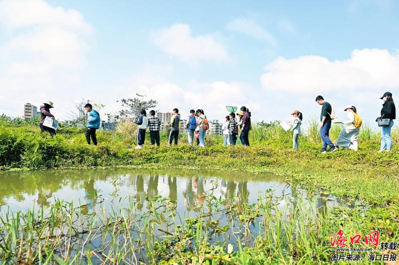 海口五源河国家湿地公园良好的生态环境吸引亲子家庭前来开展湿地探秘。