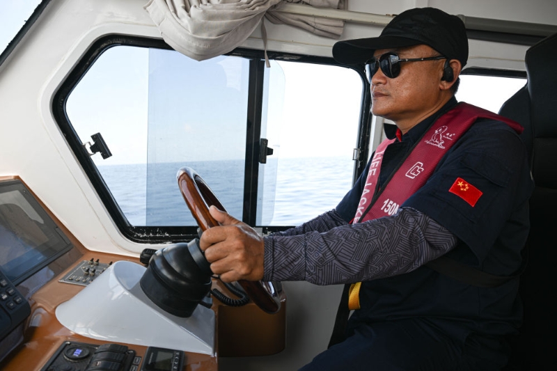↑ 3月19日,工作人员驾驶海上交通保障船由海南三沙永兴岛驶往赵述岛。