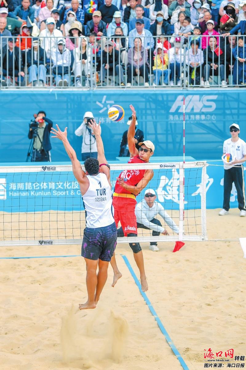 3月15日,2026年国际排联世界沙滩排球职业巡回赛未来赛(中国海口站)男子冠亚军决赛现场。记者 苏弼坤 摄