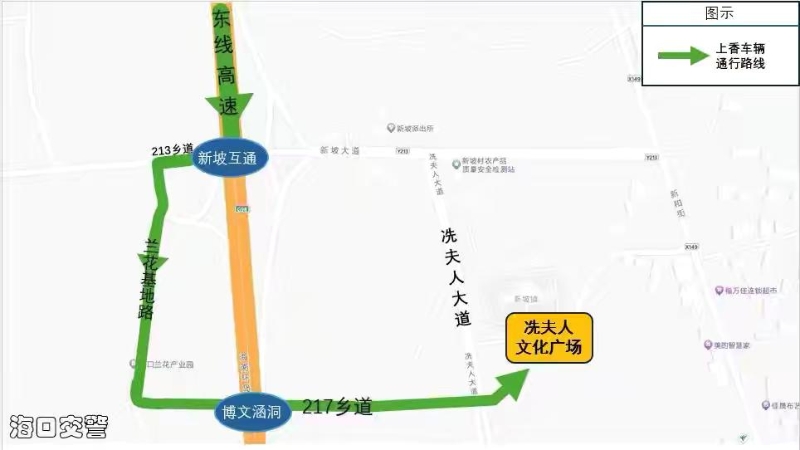 第二十五届(海口)冼夫人文化节活动将于2026年3月26日至3月30日在龙华区新坡镇举行,交警将部署足够警力做好现场交通疏导,现发布以下出行提示: