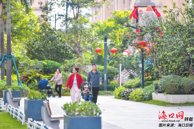 华润·海口润山府小区内,业主正在休闲散步。 记者 苏弼坤 摄