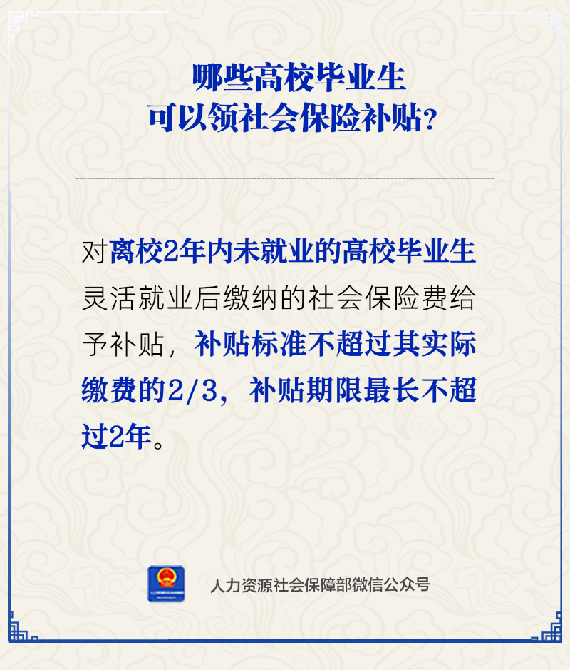 哪些高校毕业生可以领社会保险补贴?