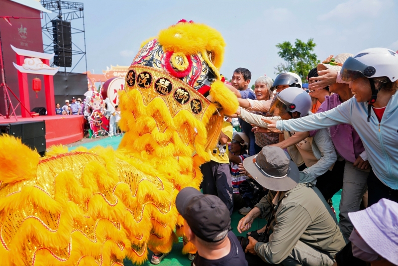 随后,鼓点铿锵,狮跃龙腾,由龙华区文化馆组织的龙狮队伍精神抖擞,时而跳跃翻滚,时而摇头摆尾,将冼夫人的精神内涵融入灵动肢体语言。