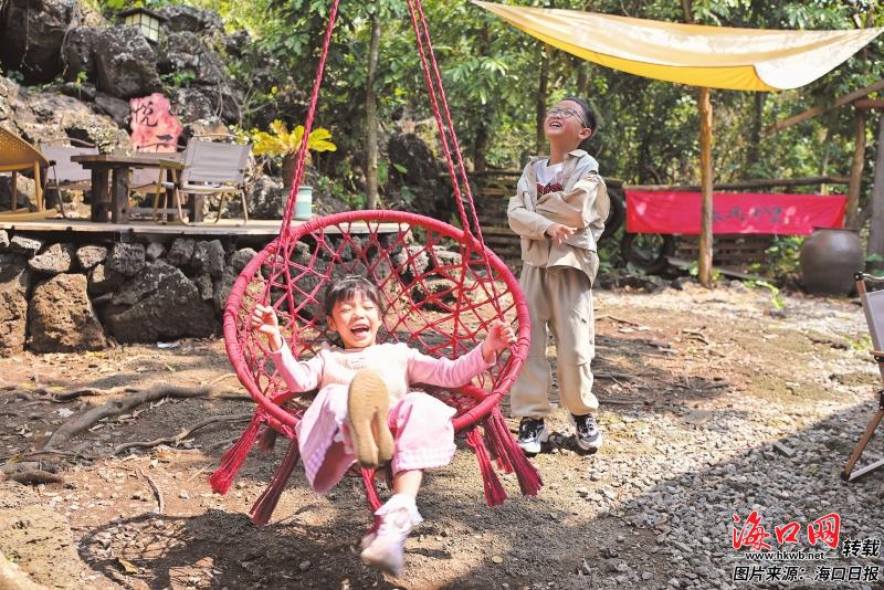 在海口秀英区石山镇道堂村委会三卿村内,孩子们在春风十里非遗小院游玩。记者 石中华 摄