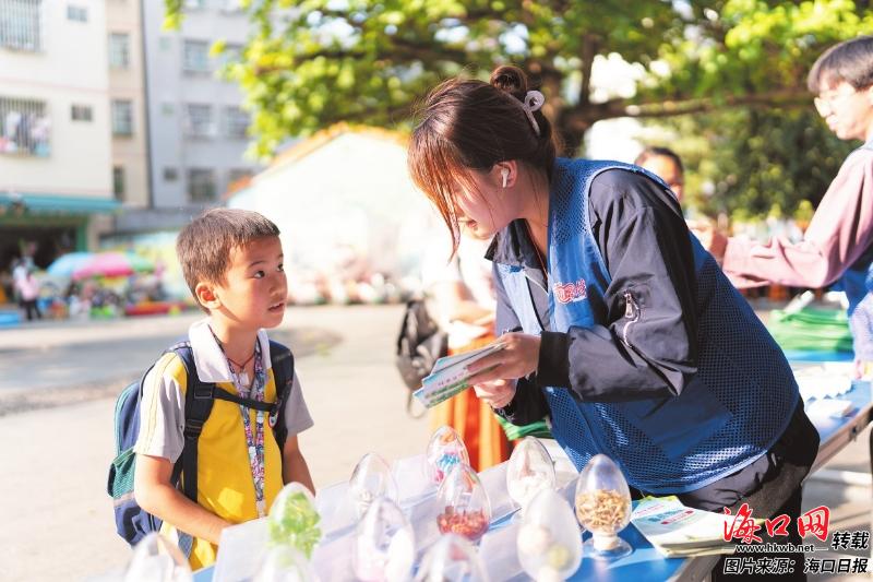 现场还设置了毒品仿真模型展示台。各类传统毒品与伪装毒品模型陈列其上,便于居民直观辨识毒品样貌。志愿者结合今年3月1日起施行的《海南自由贸易港禁毒条例》开展普法宣讲,明确涉毒法律后果,引导居民树立法治与防毒意识。