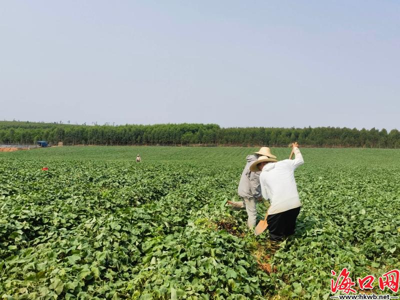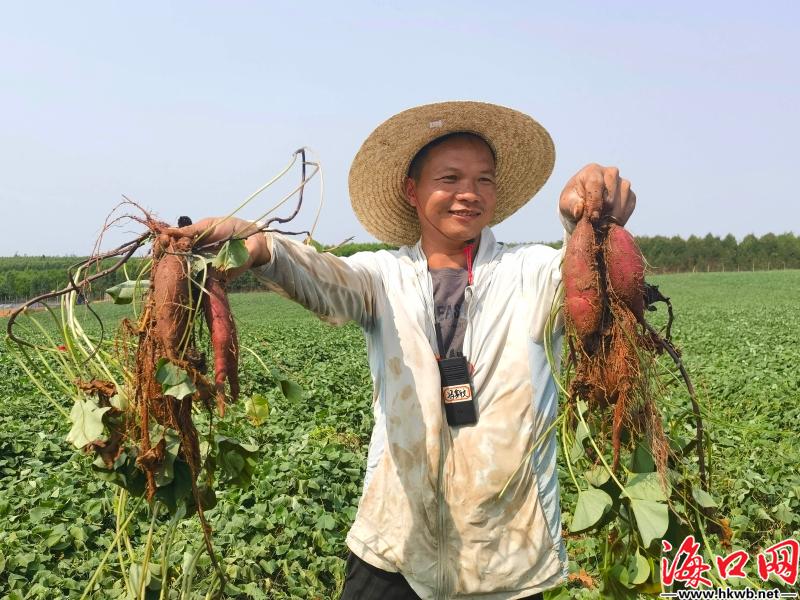 海口网3月31日消息(记者史子杨 特约记者陈创淼 通讯员蔡翔任 摄影报道)站在海口市秀英区东山镇建丰村的山坡上,眼前是一片望不到边的绿意,还有个把月,这片地上的地瓜就要成熟,不远处村民们正俯身浇水,田间洋溢着忙碌的生机。然而两年前,村里千余亩村集体土地执行的还是每亩年租金仅85元价格的合同,用于种植造纸林木。现在改种地瓜后,租金已跃升至每亩800元,这片土地也从无人问津的低效林,蜕变为生机勃勃的“致富田”。