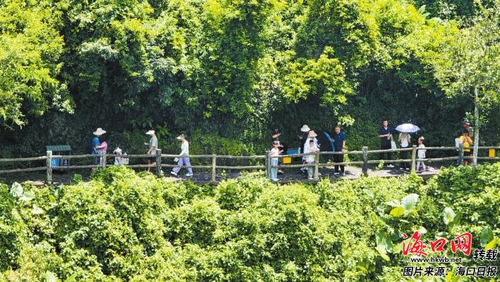 石山镇依托火山优质旅游资源,打造特色旅游路线。图为市民游客在海口火山口公园观光游玩。