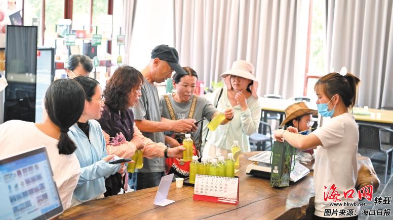 3月29日,在施茶村火山石斛产品展示厅内,市民游客正在选购火山石斛汁。