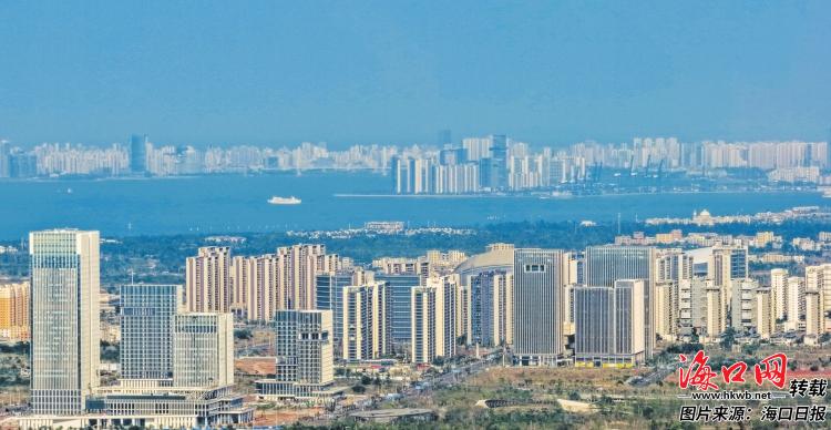 位于海口西海岸的复兴城国际数字港与城市天际线交相辉映,尽显自贸港蓬勃生机。