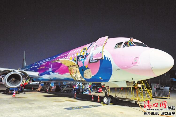 4月4日,南航工程技术分公司海口基地工作人员对“消博号”彩绘飞机进行检修。 记者 苏弼坤 摄