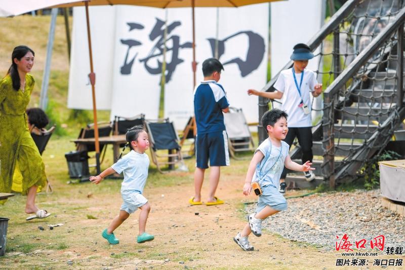 位于海边的秀英区西秀镇荣山寮村同样人气十足。在这个兼具渔家风情与时尚活力的乡村旅游点内,沙滩露营地、滨海咖啡馆座无虚席,年轻人围坐闲聊、拍照打卡,家长带着孩子踏浪玩沙、亲近大海。