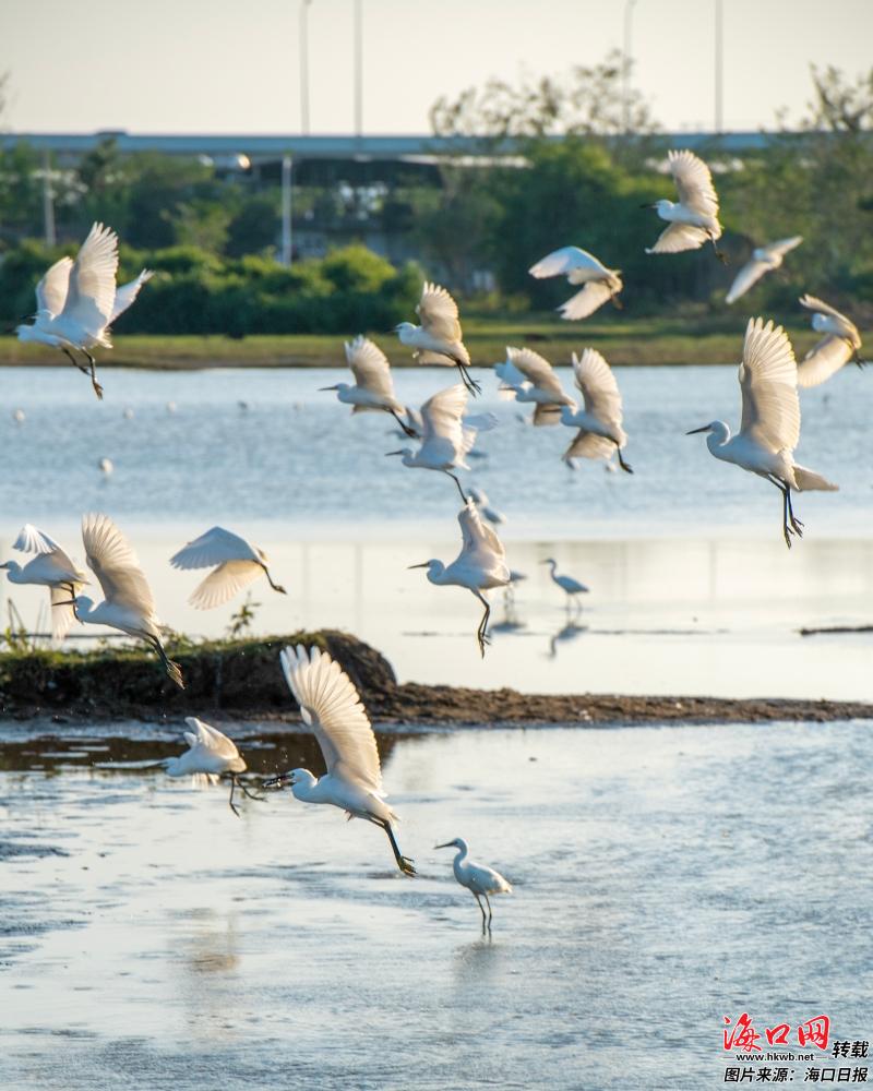 2025年11月,白鹭在秀英区西秀镇博养村湿地越冬。记者 石中华 摄