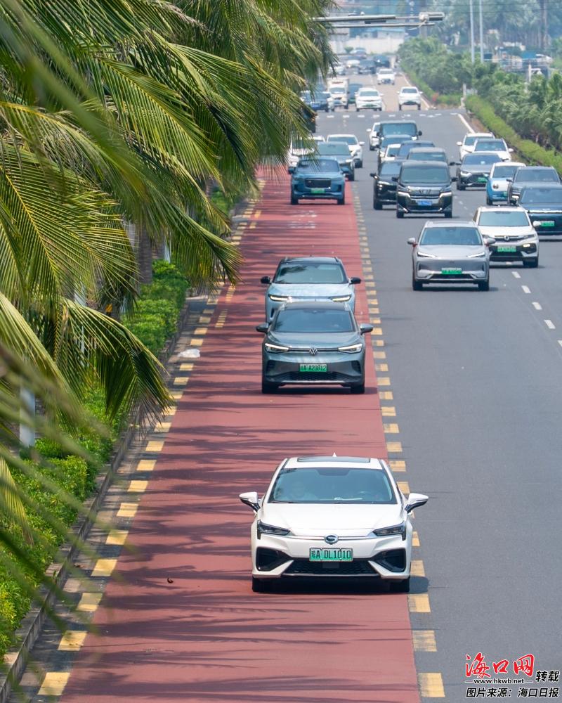 在海口街头,一辆辆“绿牌车”成为移动的风景线。记者 石中华 摄