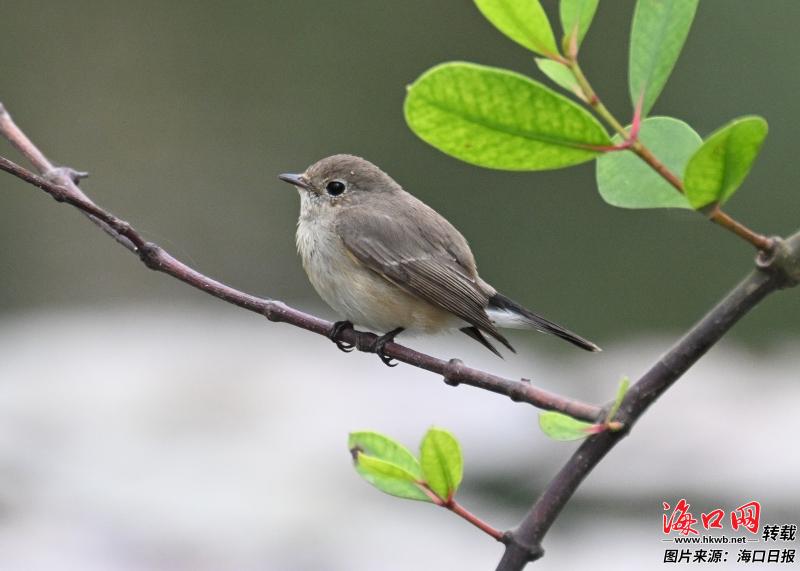 在海口白沙门公园栖息的红胸姬鹟。记者 石中华 摄