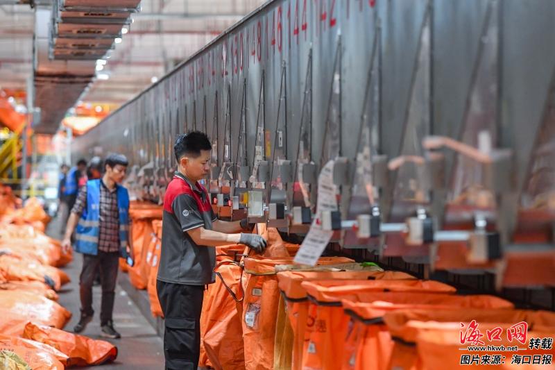 圆通海口集运中心工作人员正在分拣快递。记者 苏弼坤 摄