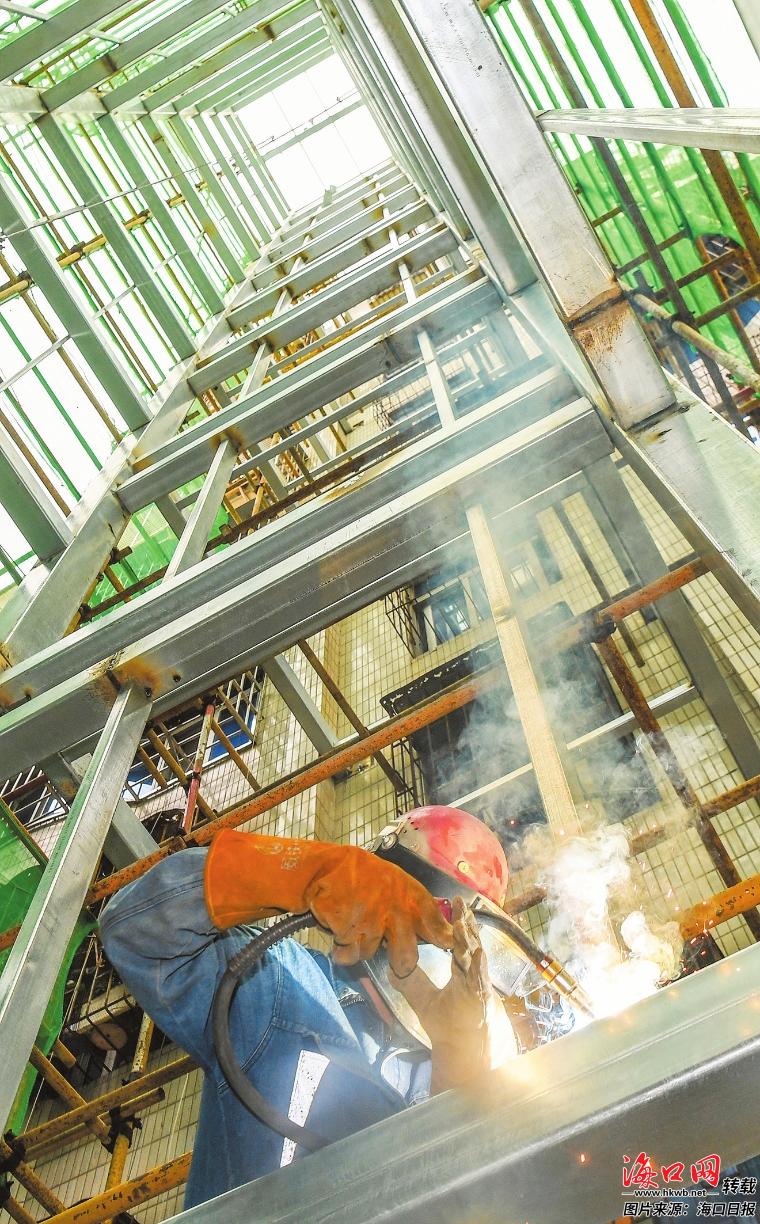 工人在茶叶大院小区进行电梯安装施工。记者 康登淋 摄