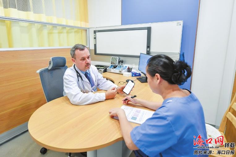在海口市人民医院,国际医疗部副主任沈义扬在为市民进行相关诊疗。记者 苏弼坤 摄