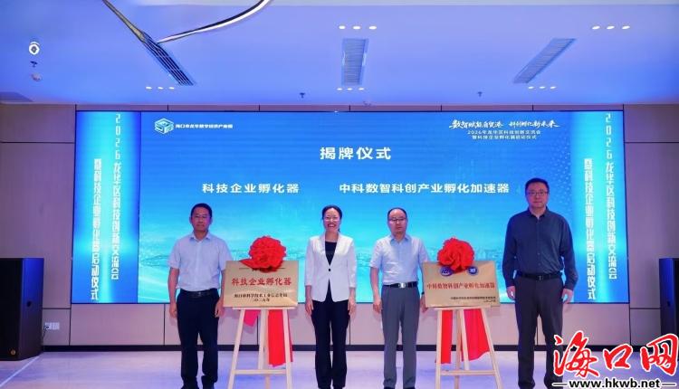 海口网4月10日消息(记者史子杨 颜绵程 特约记者萧海山)4月10日上午,以“数智赋能自贸港 科创孵化新未来”为主题的2026年龙华区科技创新交流会暨科技企业孵化器启动仪式在海口市龙华数字经济产业园(南海园)举行。会上四大科创平台同步揭牌,超二十家省内外科技企业集中签约入驻,政、产、学、研、金多方力量汇聚,共同擘画龙华区以科技创新驱动产业升级、培育新质生产力的发展新蓝图。