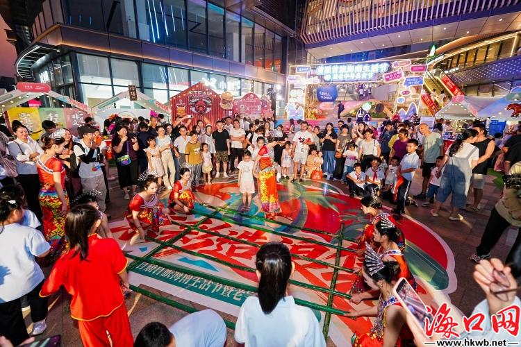 仪式在激昂的京韵鼓上舞中拉开帷幕,各项节目精彩上演。同步开启的美食市集热闹非凡,汇聚了东来顺、马迭尔、海南沿江饭店、椰树、海南椰岛等多家百年老字号,以及文昌邓记清补凉、昌江乌烈羊等地道风味。还有黎族竹竿舞吸引市民互动,京味相声逗乐全场。