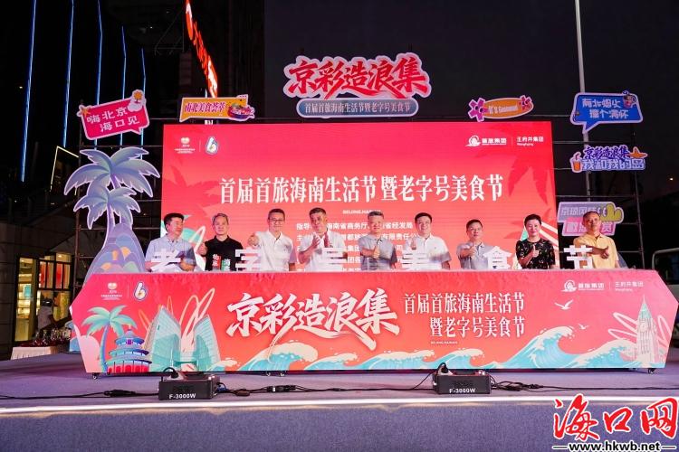 海口网4月10日消息(记者史子杨)4月10日晚,由海南省商务厅、海南国际经济发展局指导,首旅集团主办、王府井集团承办的“京彩造浪集——首届首旅海南生活节暨老字号美食节”在海口王府井海垦广场举行。作为第六届中国国际消费品博览会的重要配套活动,本次市集将持续至4月19日,每日17:00-22:00开放,为市民游客和消博会全球客商带来一场融合老字号美食、非遗展演、夜间消费的沉浸式文化盛宴。