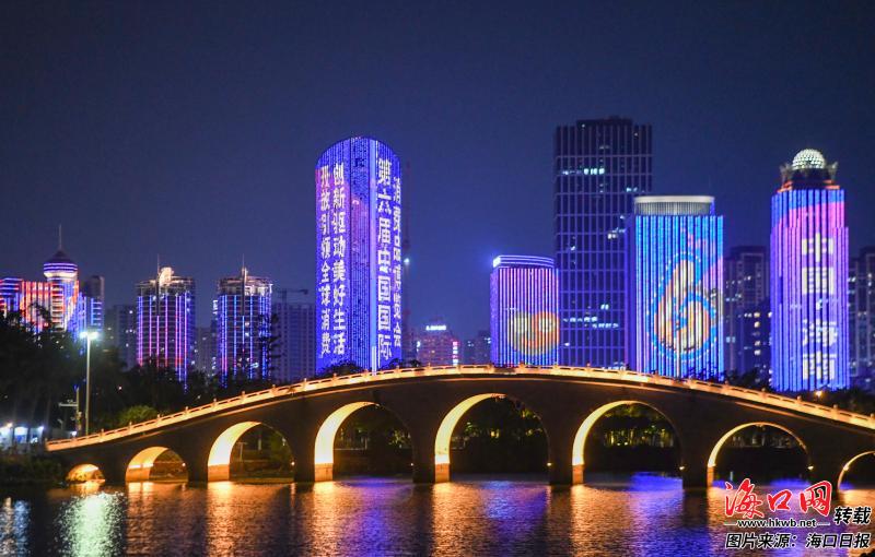 第六届中国国际消费品博览会召开在即,4月10日,滨海大道楼宇点亮主题灯光秀,欢迎前来参会的八方宾客。记者 苏弼坤 摄