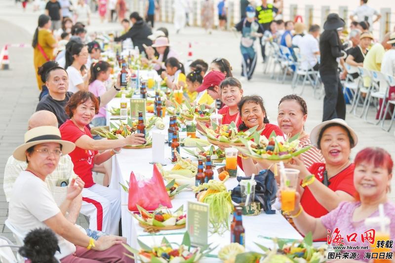 4月10日,在2026年“海南三月三 山海同心圆”海口分会场活动中,特色长桌宴吸引众多市民游客前来品尝美食,共享节庆欢乐。 记者 苏弼坤 摄
