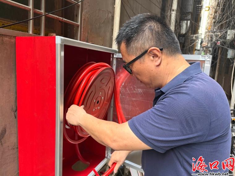 海口网4月11日消息(记者史子杨 特约记者萧海山 摄影报道)近日,在海口龙华区海垦街道滨涯花园新村,街道应急办、社区与消防部门工作人员联合开展检查,重点核查自建居民楼室外消防软管卷盘安装情况,并向房东推广防盗网逃生窗。该片区楼间距小,巷道狭窄,部分宽度仅一米左右,存在较大火灾隐患。近期,龙华区持续推进城中村自建房消防安全整治工作,通过安装室外消防软管卷盘、推动防盗网开设逃生窗、清理楼道杂物等举措,着力补齐城中村消防设施短板,提升基层火灾防控与自救能力。