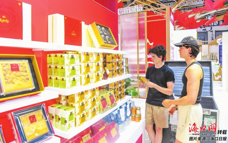 作为本届消博会主宾国,加拿大打造400平方米国家馆。记者在展台看到,香气浓郁的羊奶粉、口感清爽的冰酒、造型精美的时尚箱包等展品整齐陈列,充分展现加拿大特色产业优势与优质消费供给。据了解,展会期间,加拿大还将带来多项特色活动,其中,枫味加肴—加拿大美食节(Taste of Canada)将呈现多款具有代表性的加拿大食品。